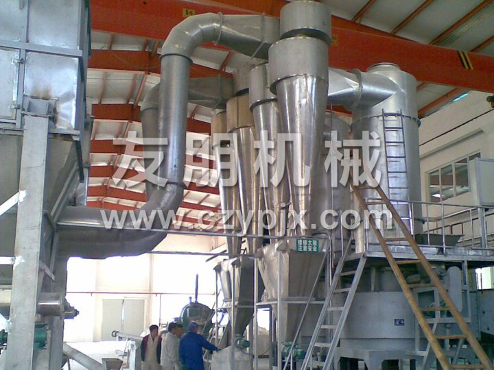 7、干燥室內(nèi)周向氣速高,物料停留時間短,有效防止物料粘壁及熱敏性物料變質(zhì)現(xiàn)象,達到高效、快速、小設備、大生產(chǎn)。